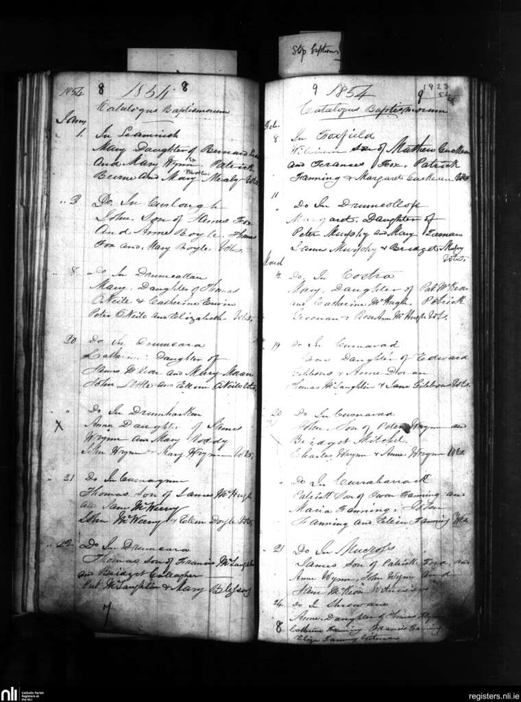 Fenagh; County of Leitrim; Diocese of Ardagh. Baptisms, Jan. 1854 to Mar. 1854