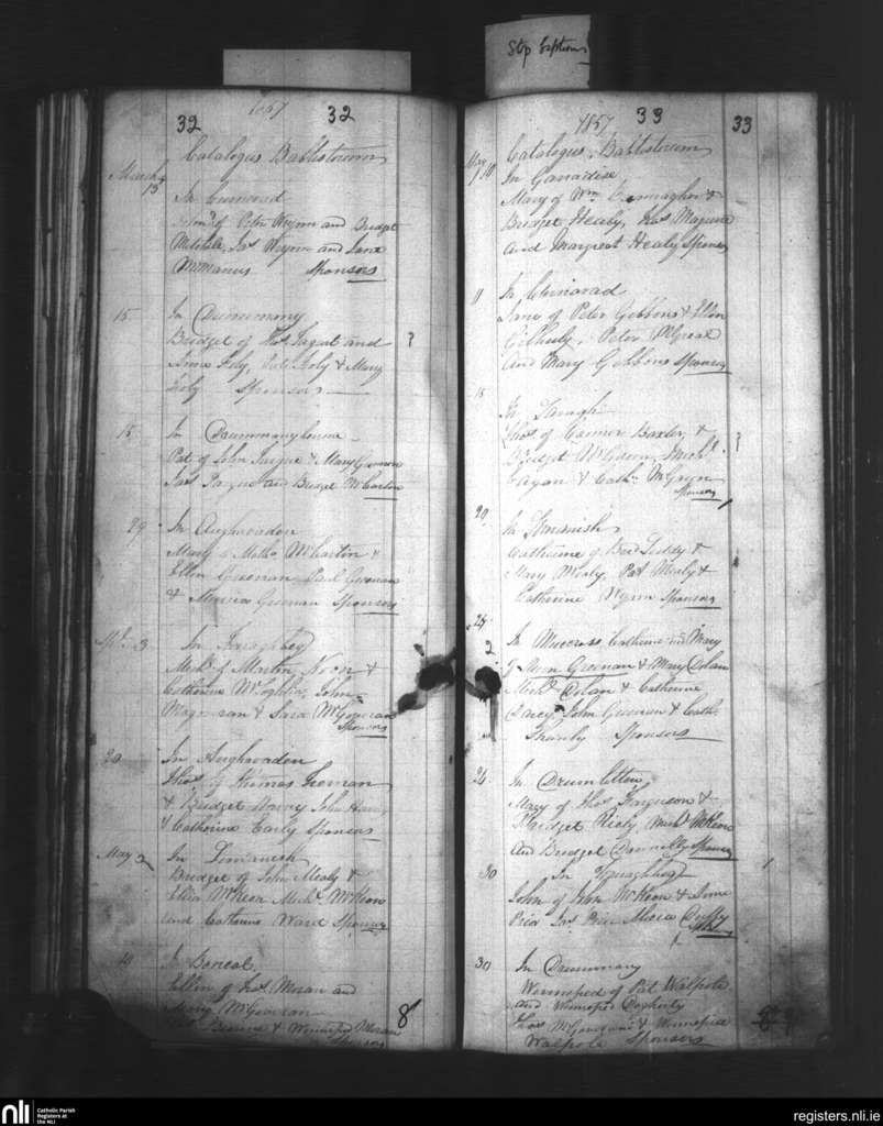 Fenagh; County of Leitrim; Diocese of Ardagh. Baptisms, Mar. 1857 to May 1857