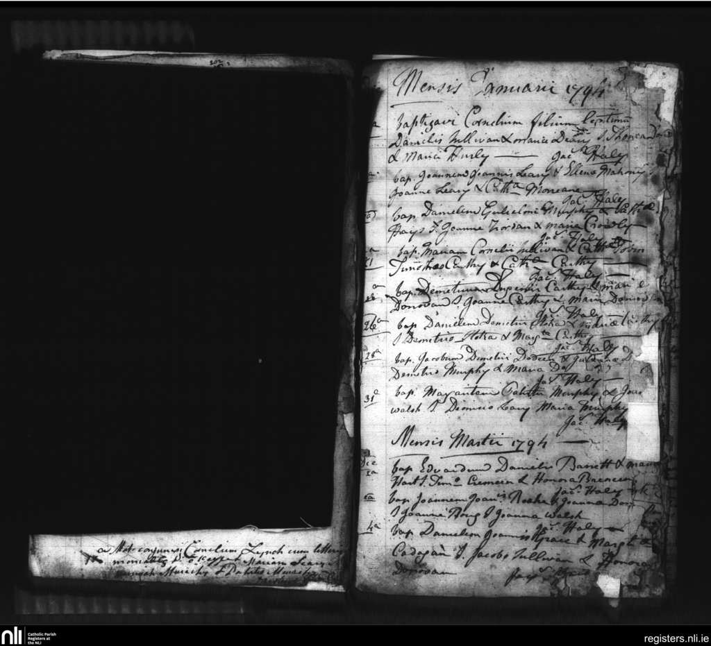 Bandon; County of Cork; Diocese of Cork and Ross. Baptisms, Jan. 1794 to Mar. 1794