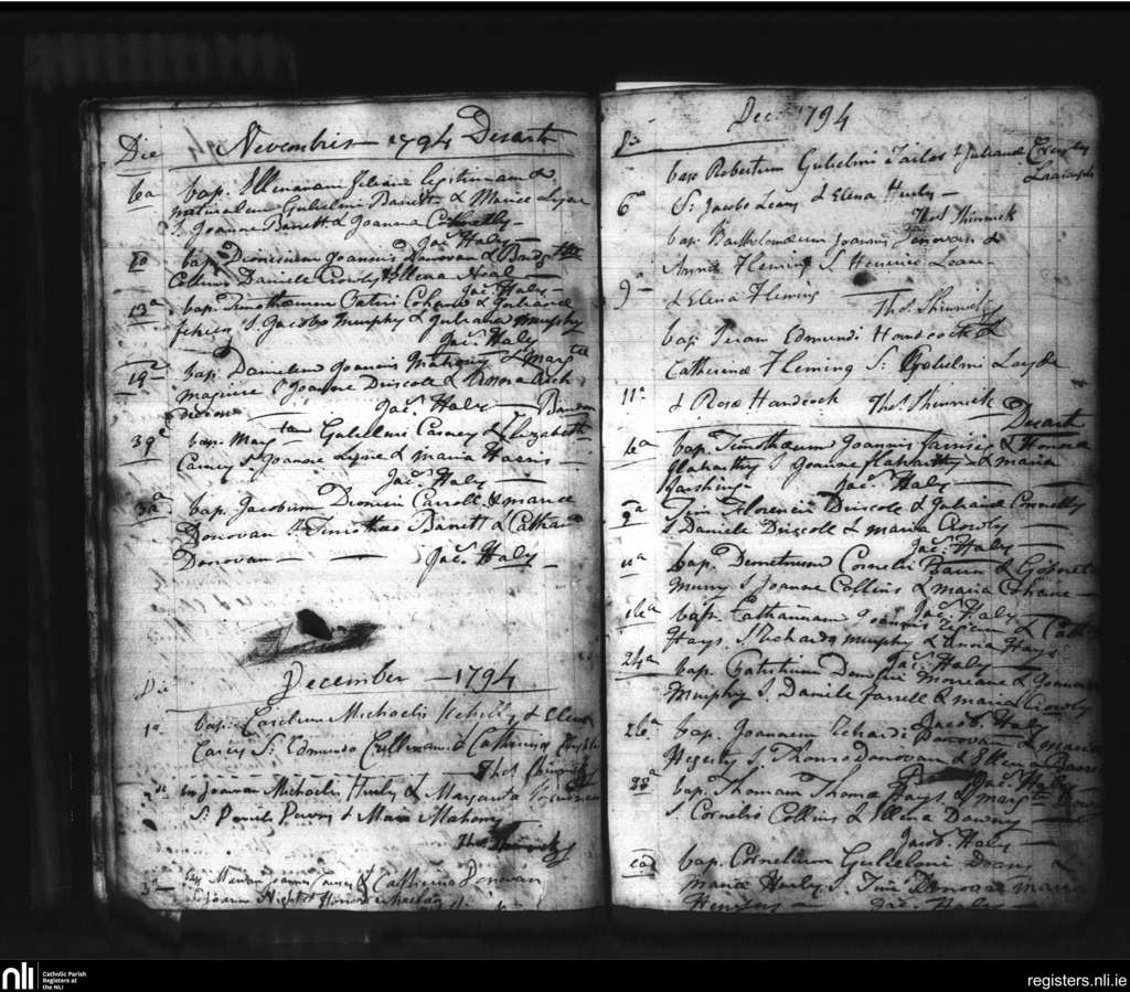 Bandon; County of Cork; Diocese of Cork and Ross. Baptisms, Nov. 1794 to Dec. 1794