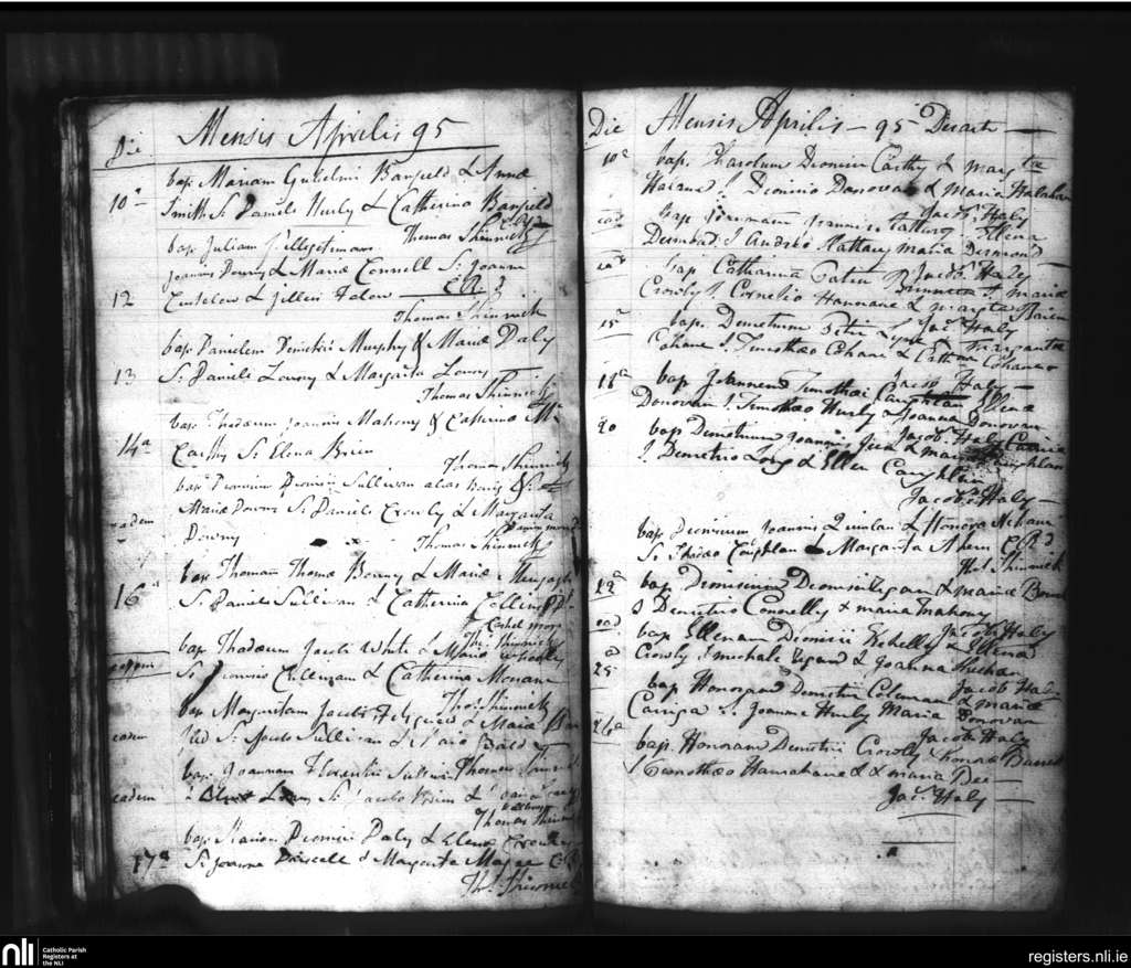 Bandon; County of Cork; Diocese of Cork and Ross. Baptisms, Apr. 1795