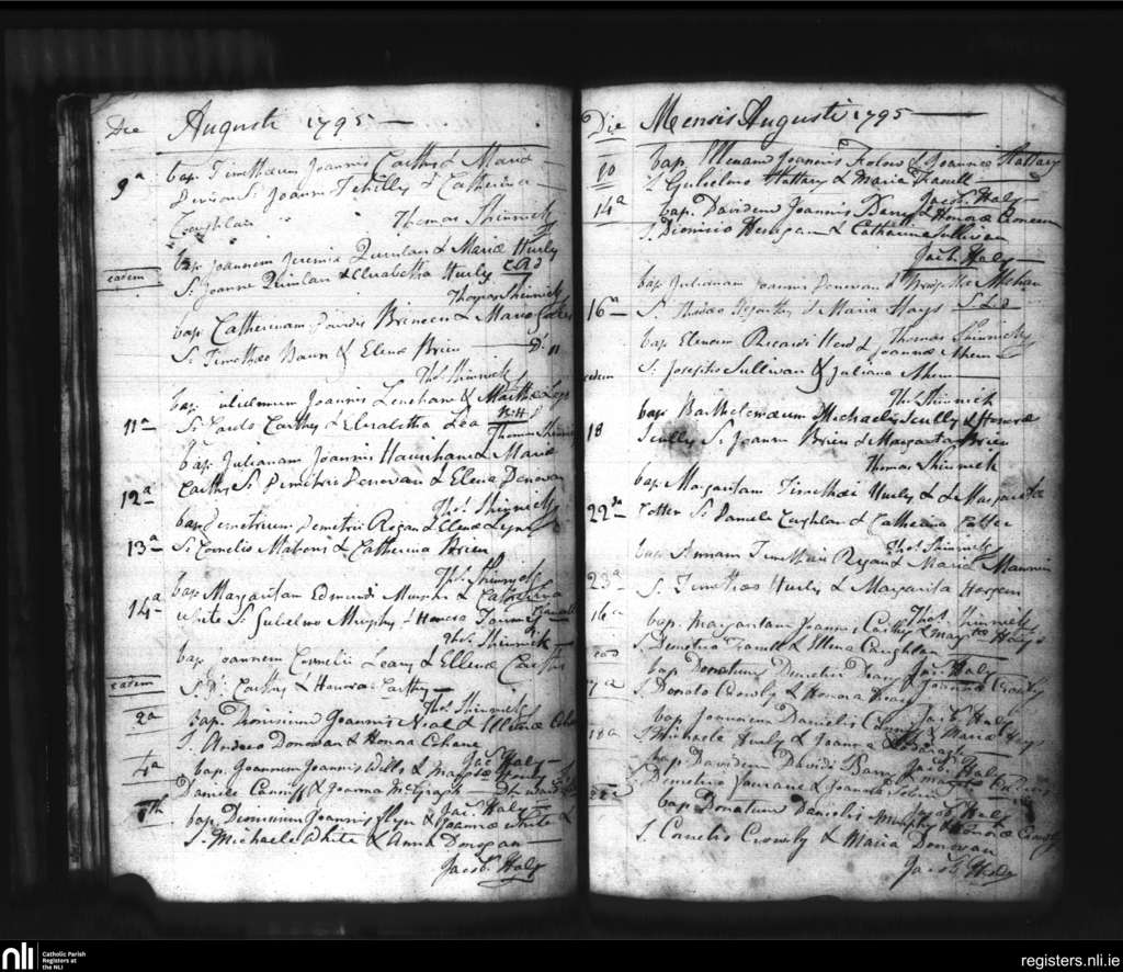 Bandon; County of Cork; Diocese of Cork and Ross. Baptisms, Aug. 1795