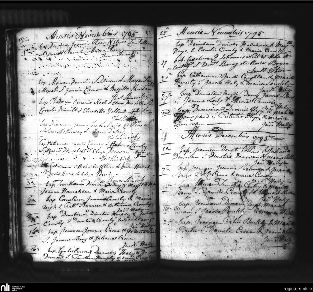 Bandon; County of Cork; Diocese of Cork and Ross. Baptisms, Nov. 1795 to Dec. 1795