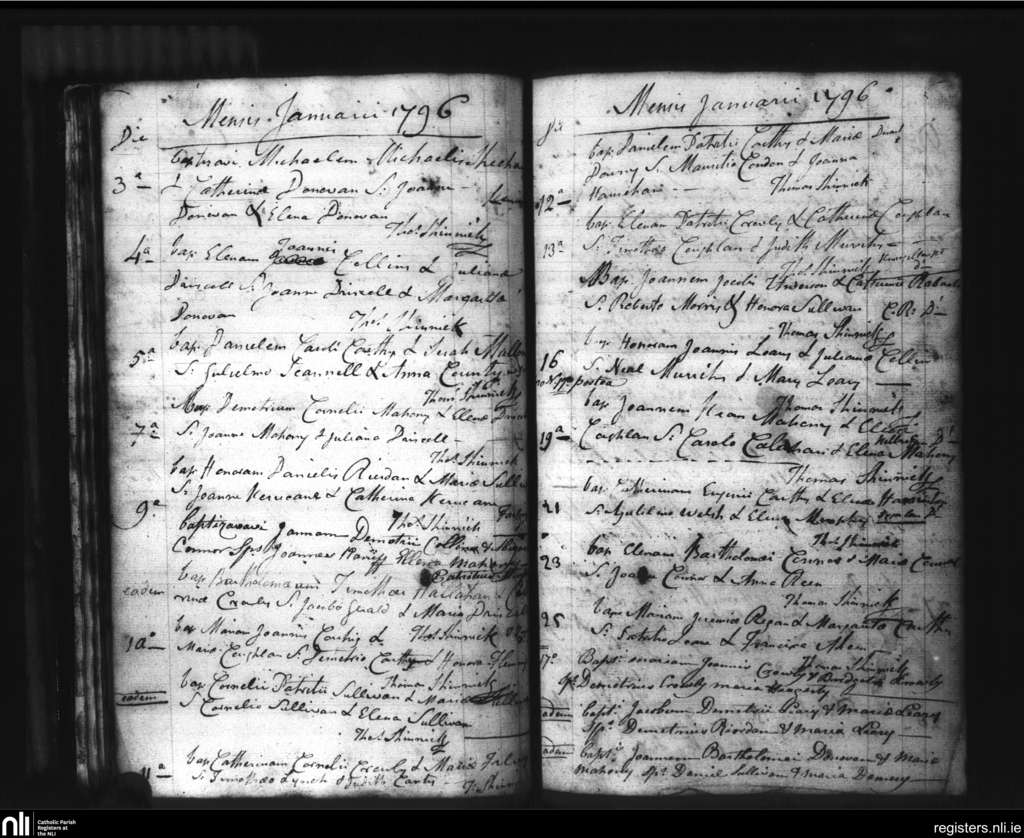 Bandon; County of Cork; Diocese of Cork and Ross. Baptisms, Jan. 1796