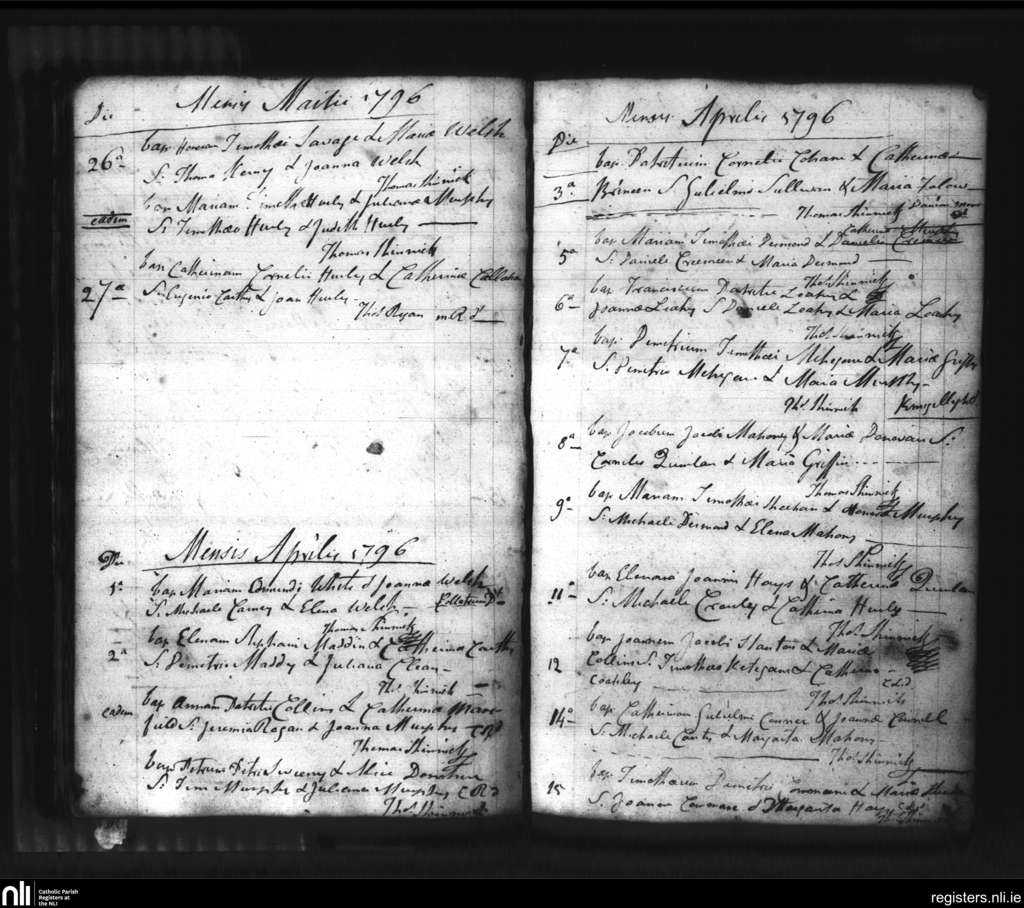 Bandon; County of Cork; Diocese of Cork and Ross. Baptisms, Mar. 1796 to Apr. 1796