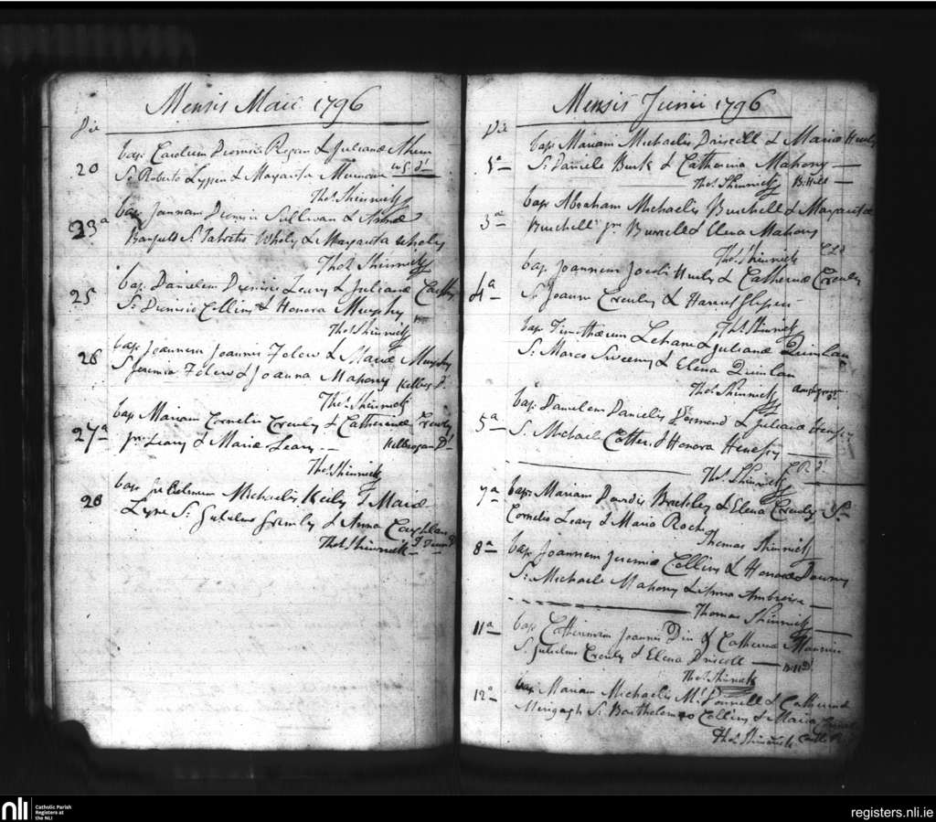 Bandon; County of Cork; Diocese of Cork and Ross. Baptisms, May 1796 to June 1796