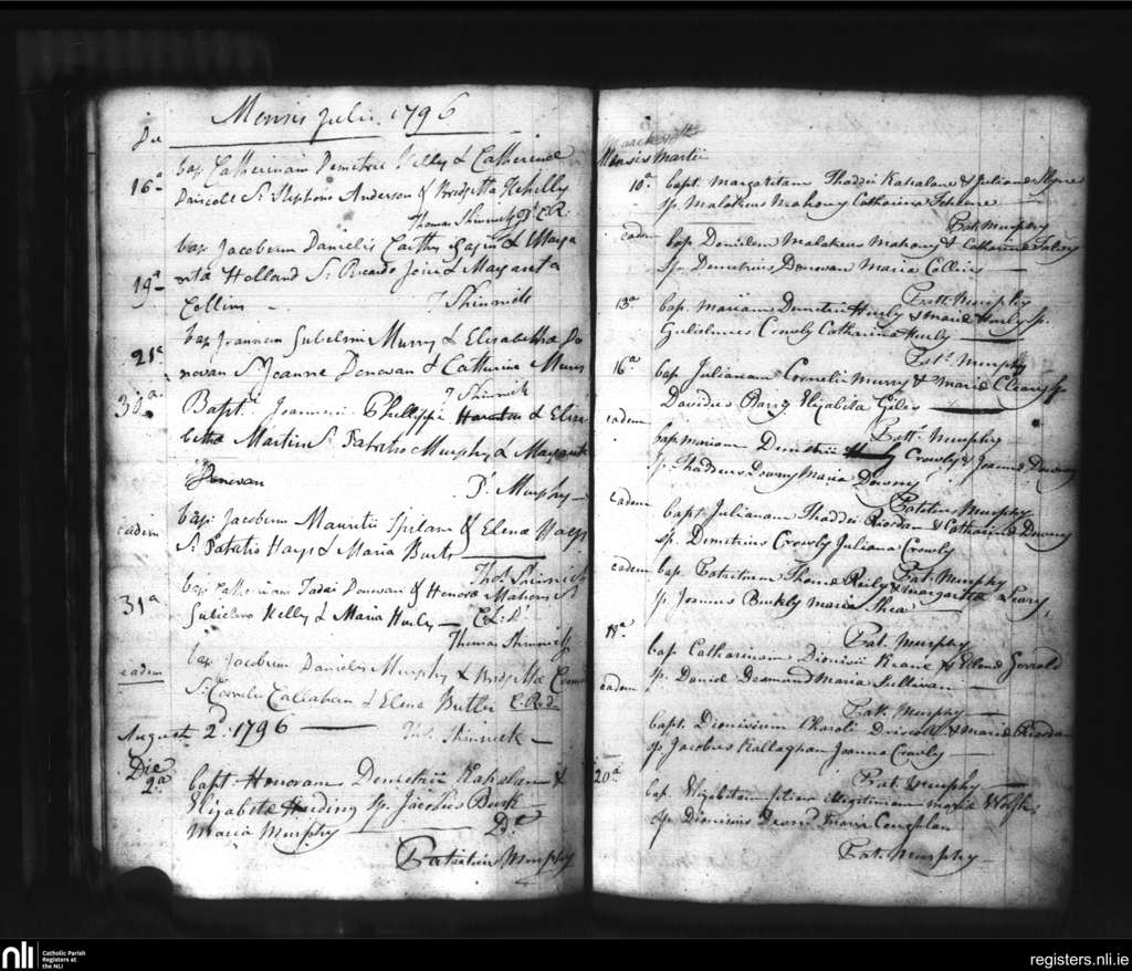 Bandon; County of Cork; Diocese of Cork and Ross. Baptisms, Mar. 1796 to Aug. 1796