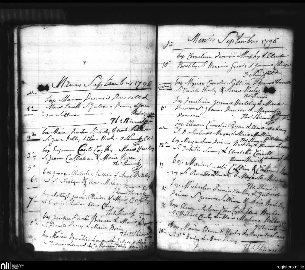 Bandon; County of Cork; Diocese of Cork and Ross. Baptisms, Sep. 1796