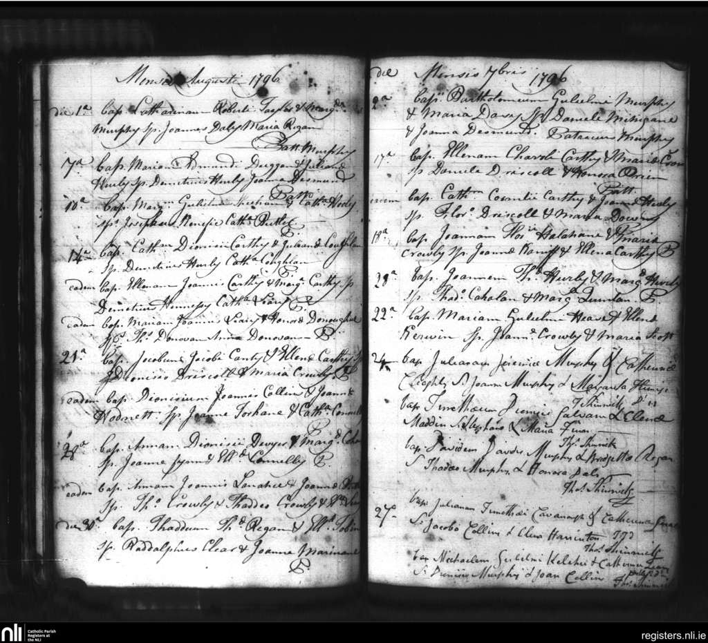 Bandon; County of Cork; Diocese of Cork and Ross. Baptisms, Aug. 1796 to Sep. 1796