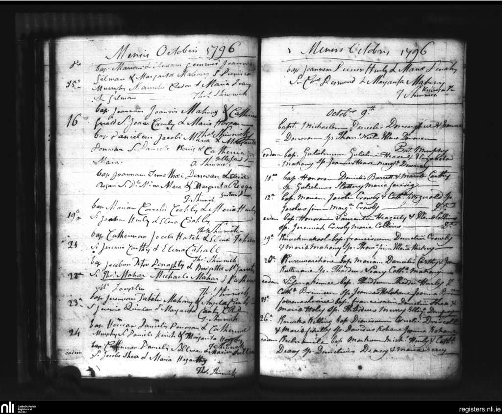 Bandon; County of Cork; Diocese of Cork and Ross. Baptisms, Oct. 1796