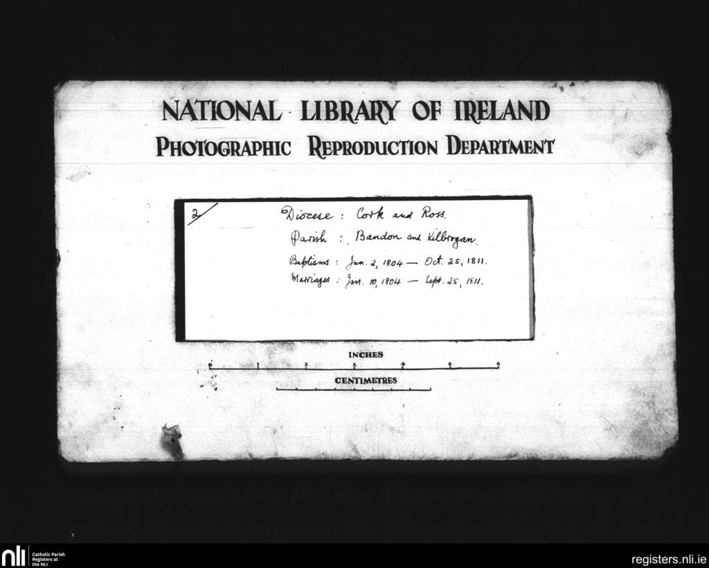 Bandon; County of Cork; Diocese of Cork and Ross. Baptisms, Marriages