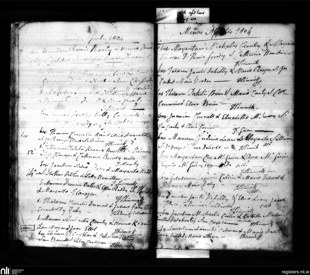 Bandon; County of Cork; Diocese of Cork and Ross. Baptisms, Apr. 1804