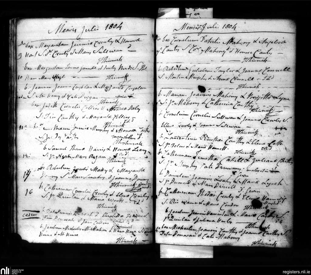 Bandon; County of Cork; Diocese of Cork and Ross. Baptisms, July 1804
