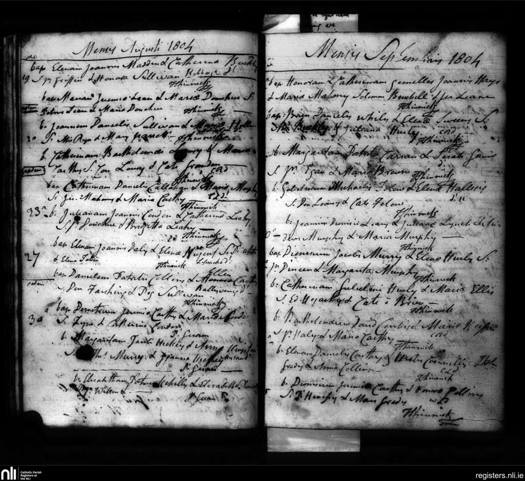 Bandon; County of Cork; Diocese of Cork and Ross. Baptisms, Aug. 1804 to Sep. 1804