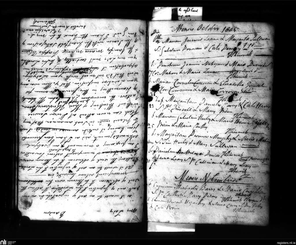 Bandon; County of Cork; Diocese of Cork and Ross. Baptisms, Oct. 1805 to Nov. 1805