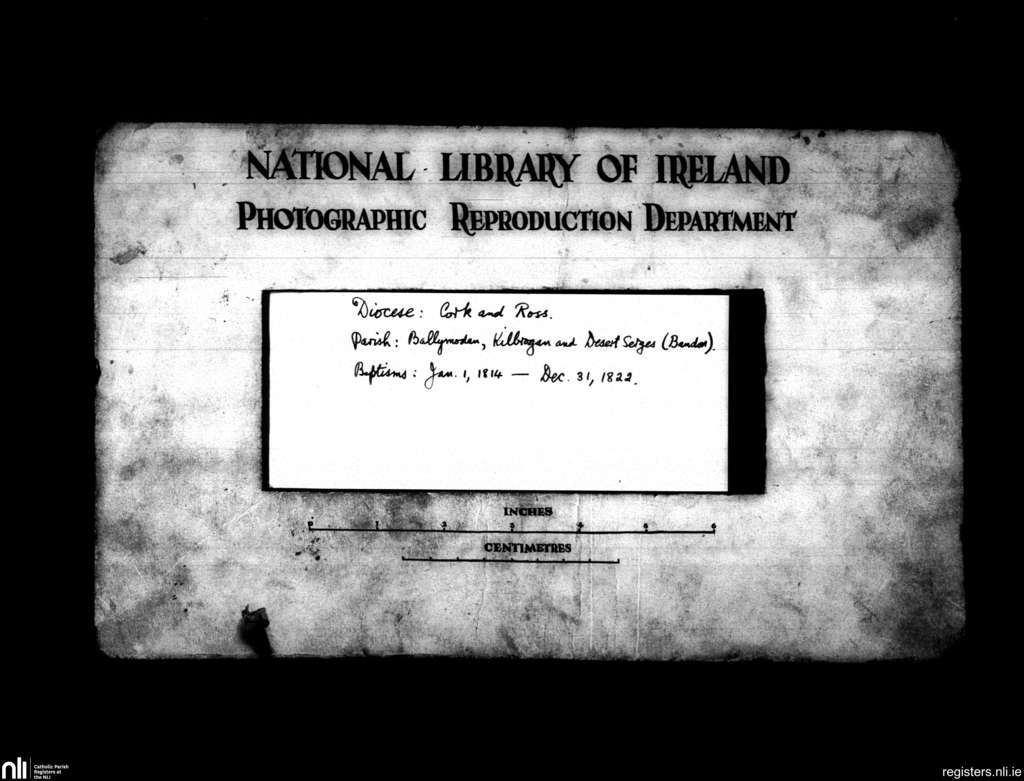 Bandon; County of Cork; Diocese of Cork and Ross. Baptisms