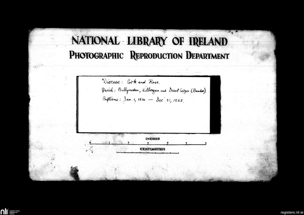 Bandon; County of Cork; Diocese of Cork and Ross. Baptisms