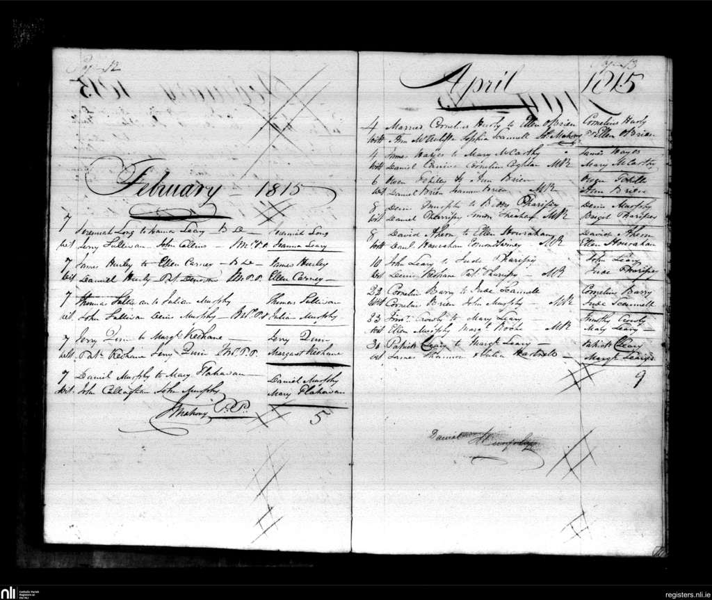 Bandon; County of Cork; Diocese of Cork and Ross. Marriages, Feb. 1815 to Apr. 1815