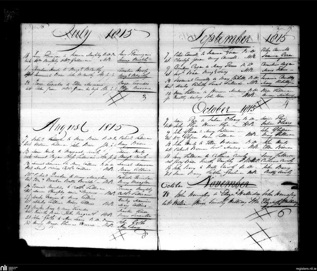 Bandon; County of Cork; Diocese of Cork and Ross. Marriages, July 1815 to Nov. 1815