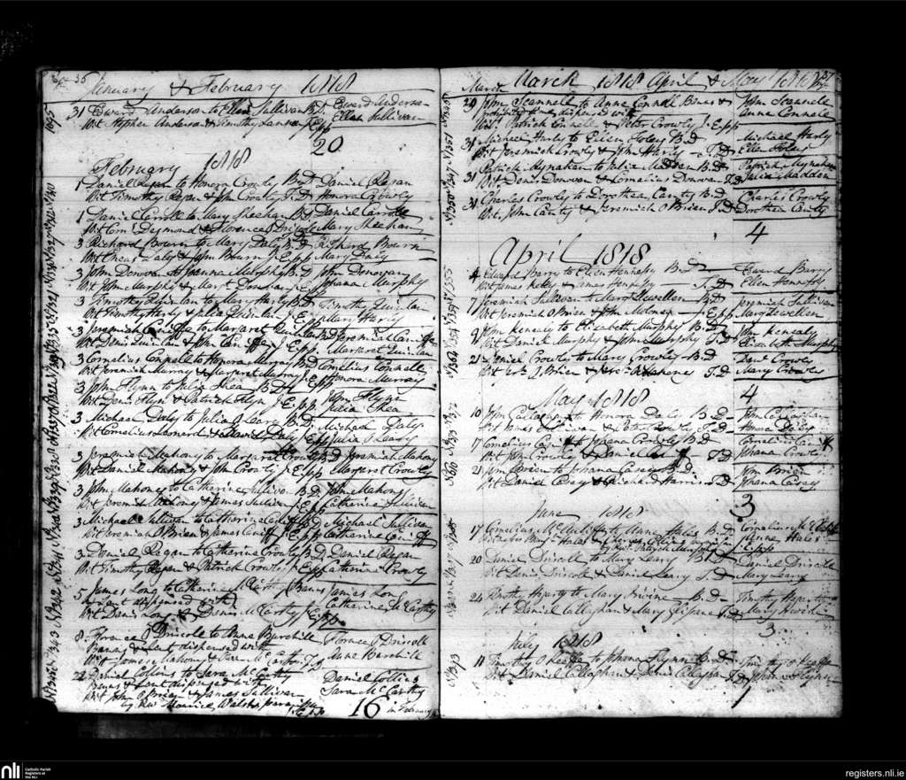 Bandon; County of Cork; Diocese of Cork and Ross. Marriages, Jan. 1818 to July 1818