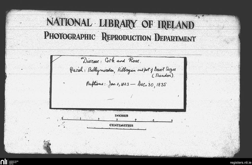 Bandon; County of Cork; Diocese of Cork and Ross. Baptisms