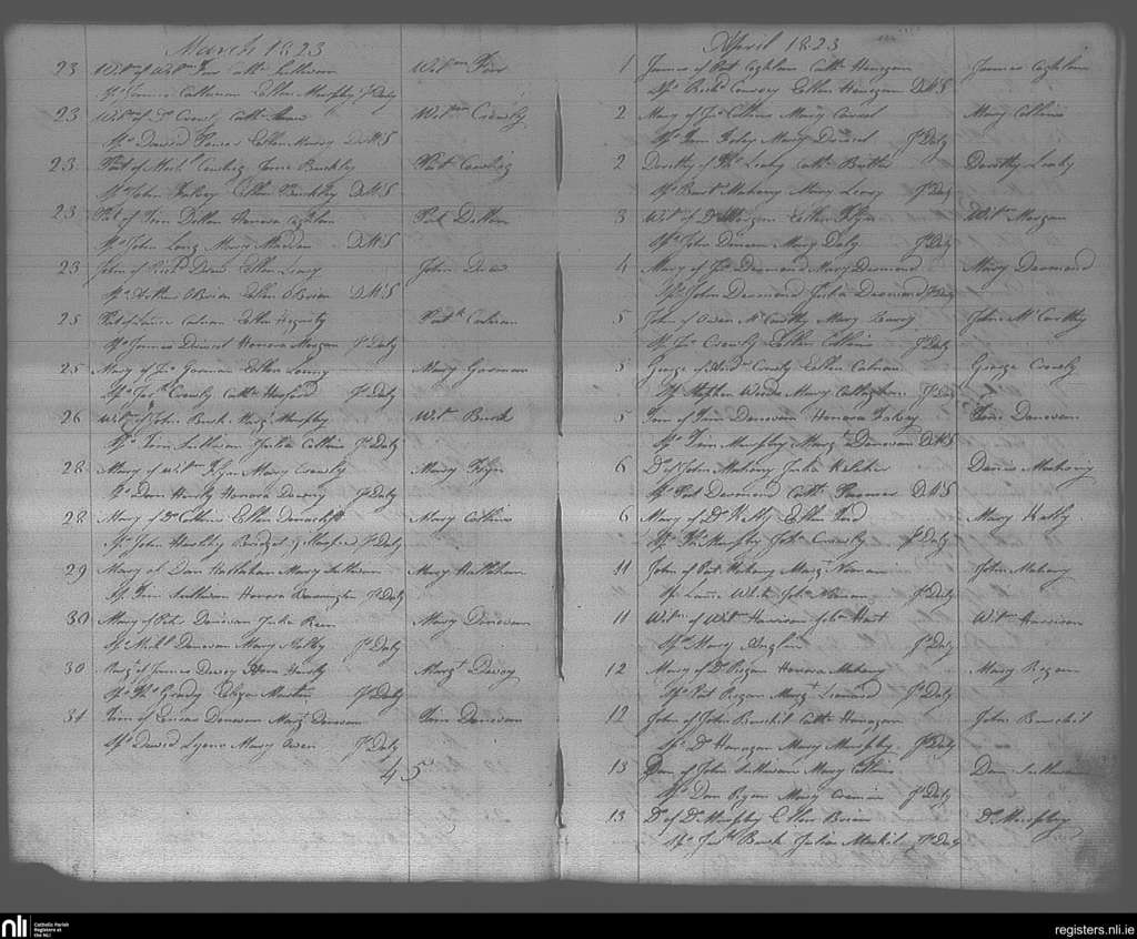 Bandon; County of Cork; Diocese of Cork and Ross. Baptisms, Mar. 1823 to Apr. 1823