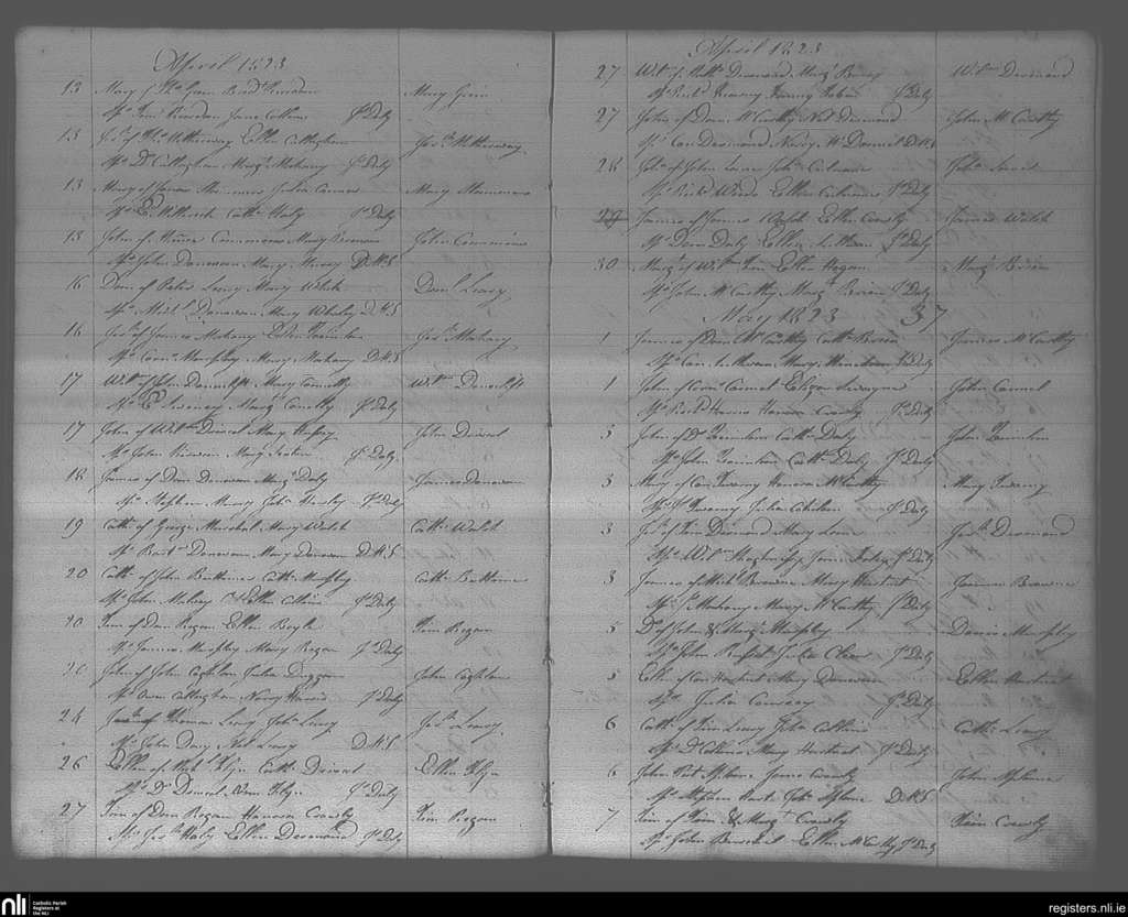 Bandon; County of Cork; Diocese of Cork and Ross. Baptisms, Apr. 1823 to May 1823