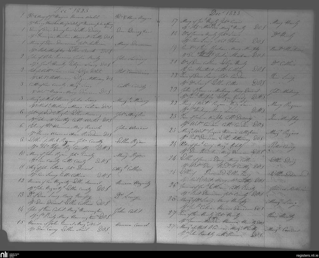 Bandon; County of Cork; Diocese of Cork and Ross. Baptisms, Dec. 1823