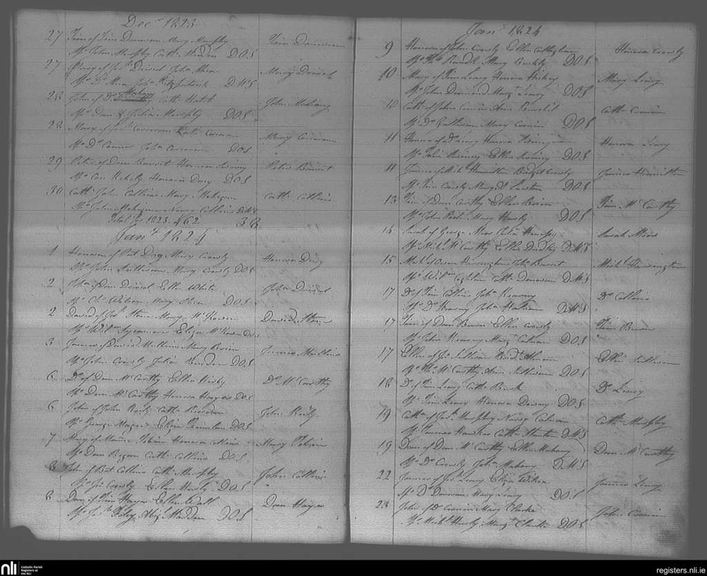 Bandon; County of Cork; Diocese of Cork and Ross. Baptisms, Dec. 1823 to Jan. 1824
