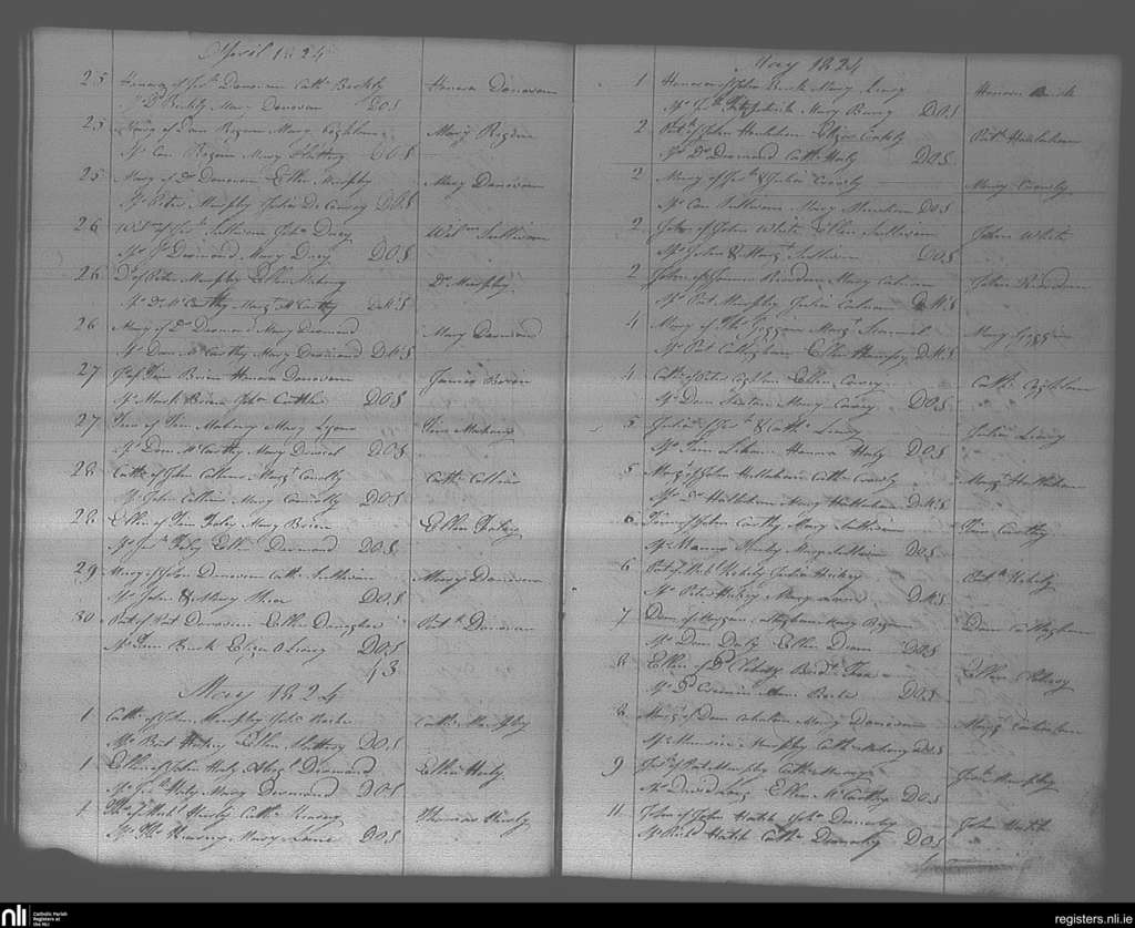Bandon; County of Cork; Diocese of Cork and Ross. Baptisms, Apr. 1824 to May 1824
