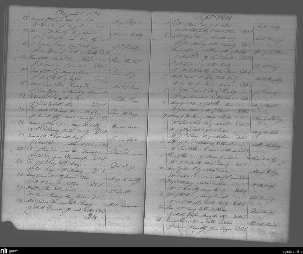 Bandon; County of Cork; Diocese of Cork and Ross. Baptisms, Aug. 1824 to Sep. 1824