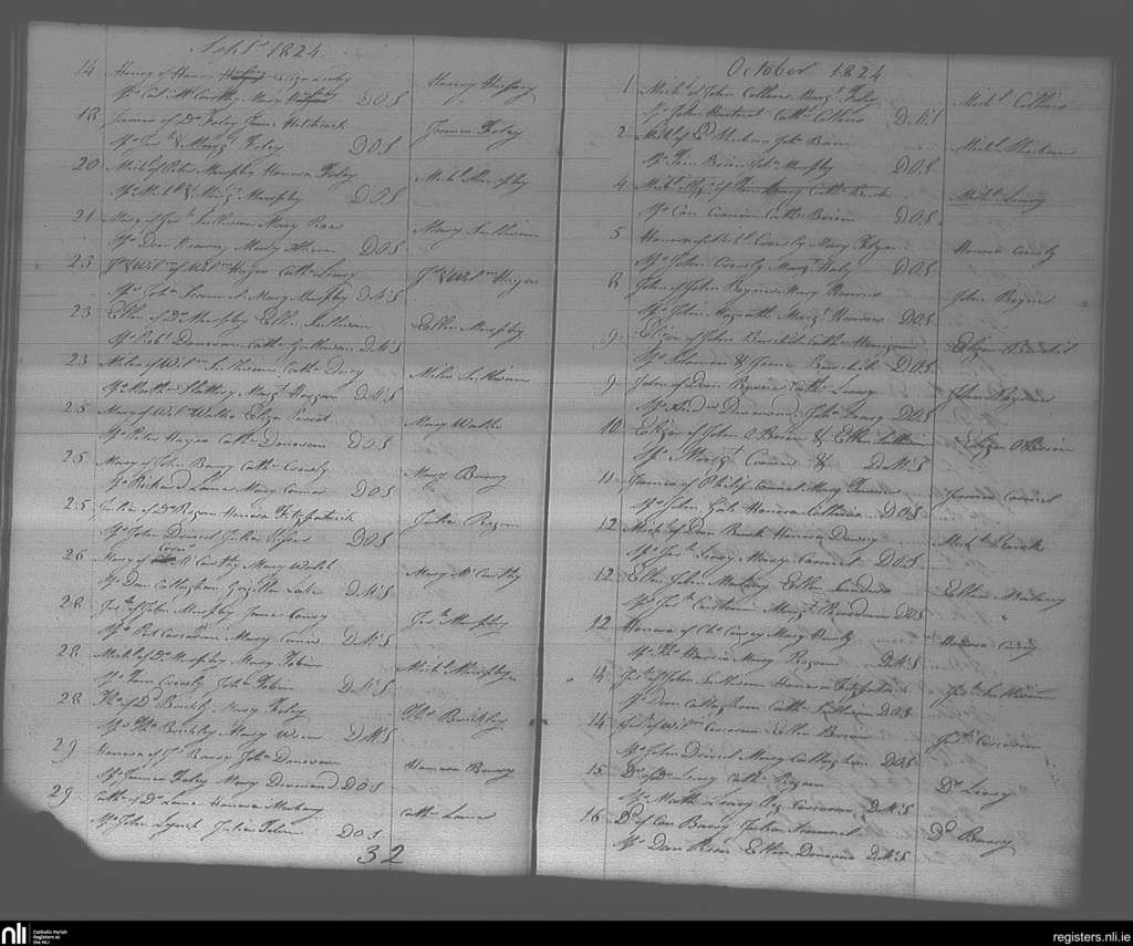 Bandon; County of Cork; Diocese of Cork and Ross. Baptisms, Sep. 1824 to Oct. 1824