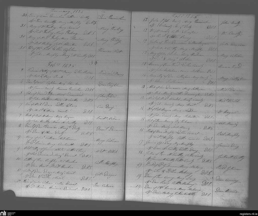 Bandon; County of Cork; Diocese of Cork and Ross. Baptisms, Jan. 1825 to Feb. 1825