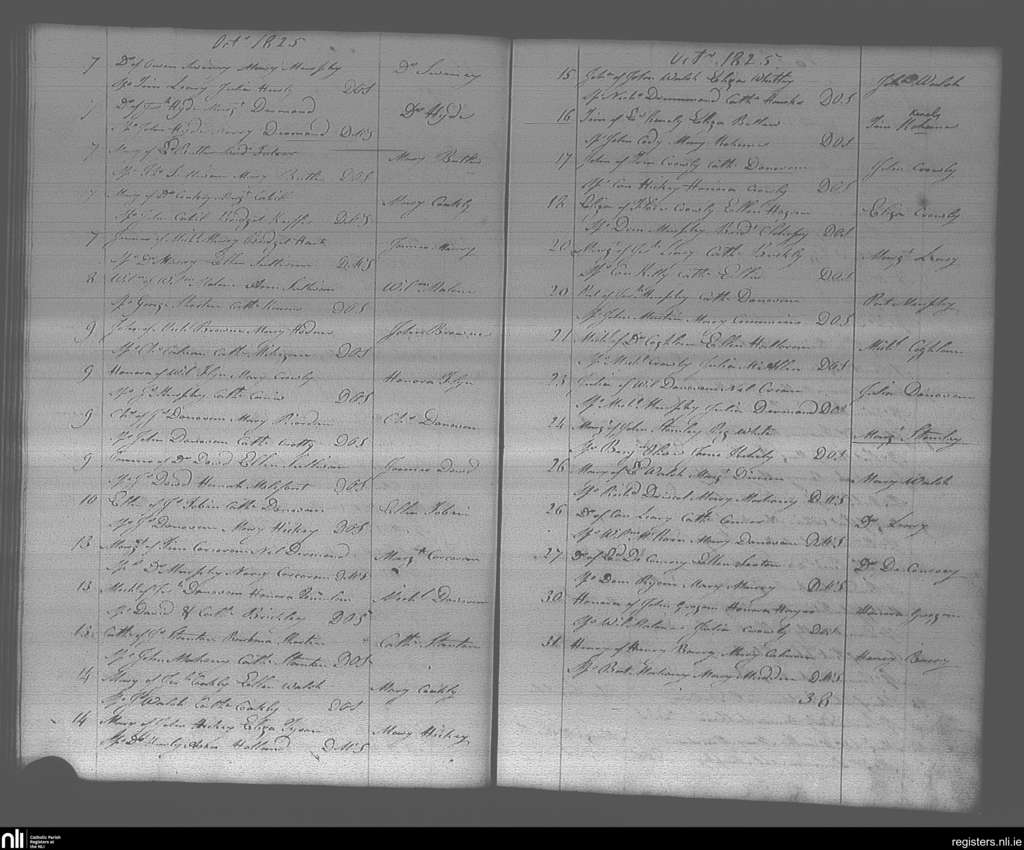 Bandon; County of Cork; Diocese of Cork and Ross. Baptisms, Oct. 1825
