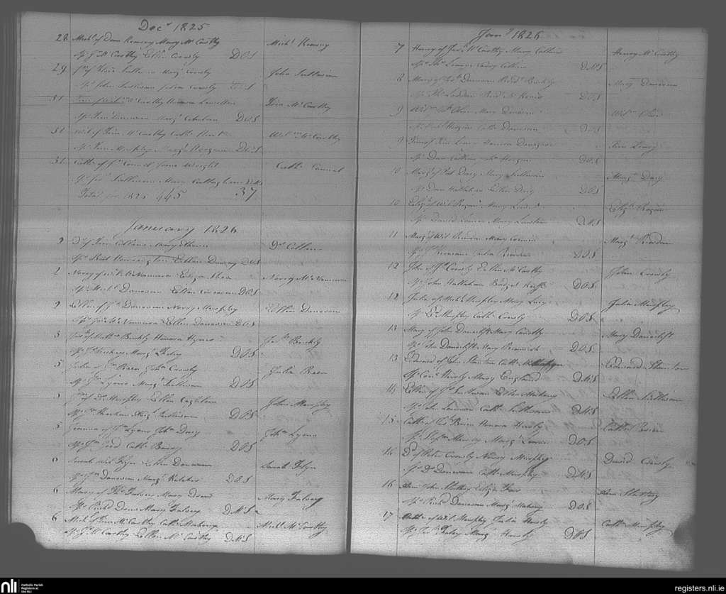 Bandon; County of Cork; Diocese of Cork and Ross. Baptisms, Dec. 1825 to Jan. 1826