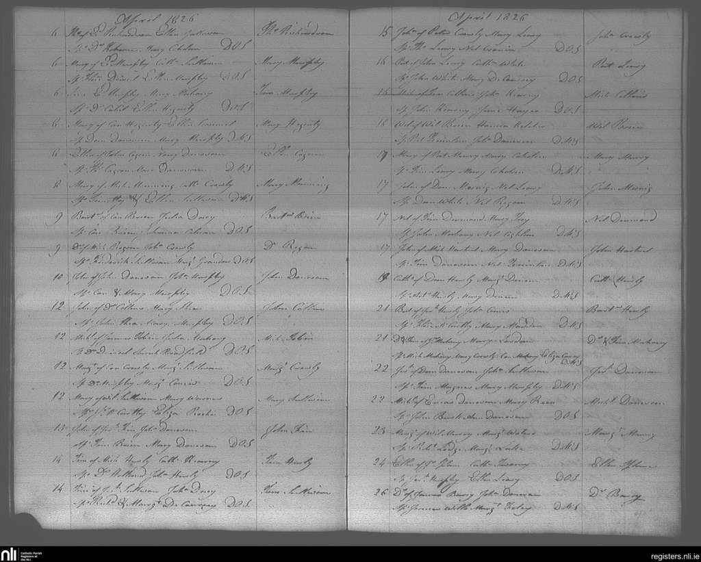 Bandon; County of Cork; Diocese of Cork and Ross. Baptisms, Apr. 1826