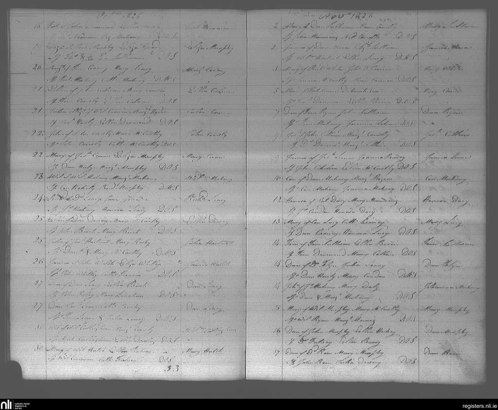 Bandon; County of Cork; Diocese of Cork and Ross. Baptisms, Oct. 1826 to Nov. 1826