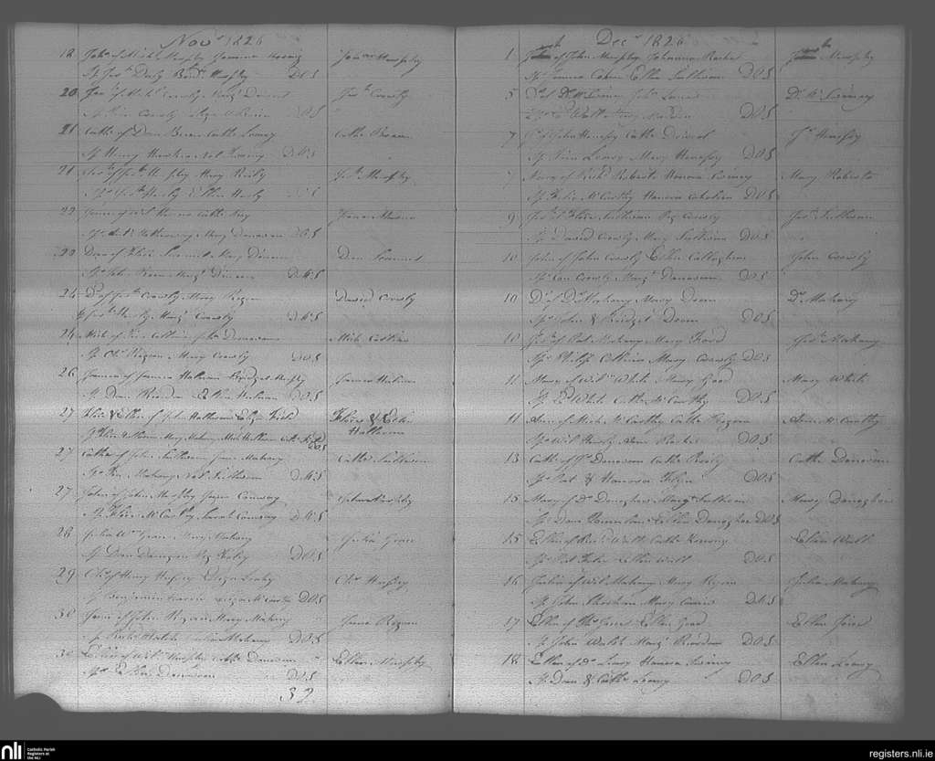 Bandon; County of Cork; Diocese of Cork and Ross. Baptisms, Nov. 1826 to Dec. 1826
