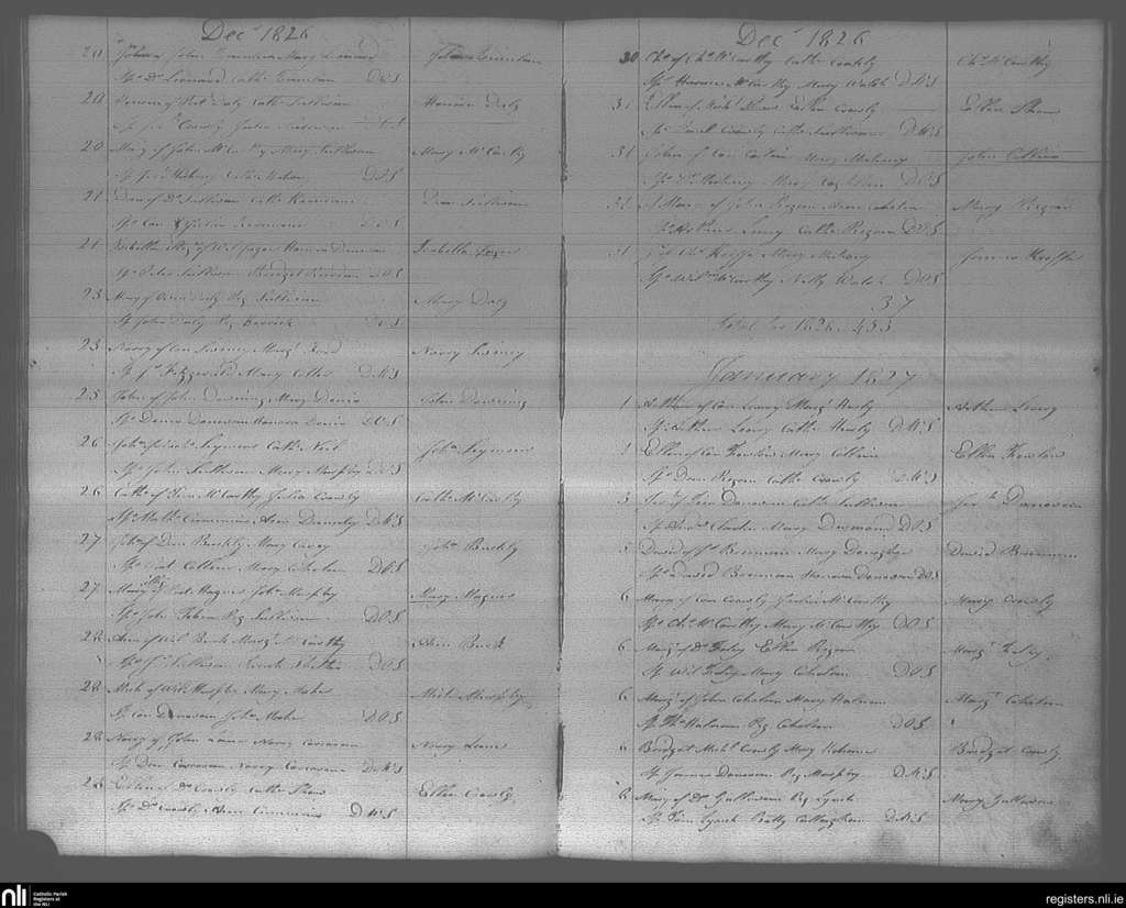 Bandon; County of Cork; Diocese of Cork and Ross. Baptisms, Dec. 1826 to Jan. 1827
