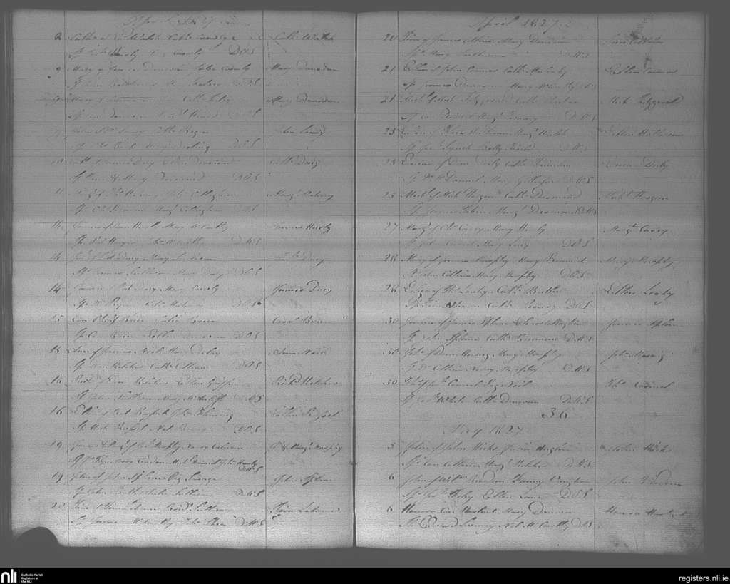 Bandon; County of Cork; Diocese of Cork and Ross. Baptisms, Apr. 1827 to May 1827