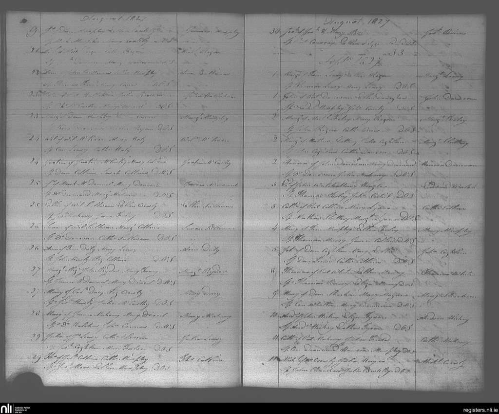 Bandon; County of Cork; Diocese of Cork and Ross. Baptisms, Aug. 1827 to Sep. 1827