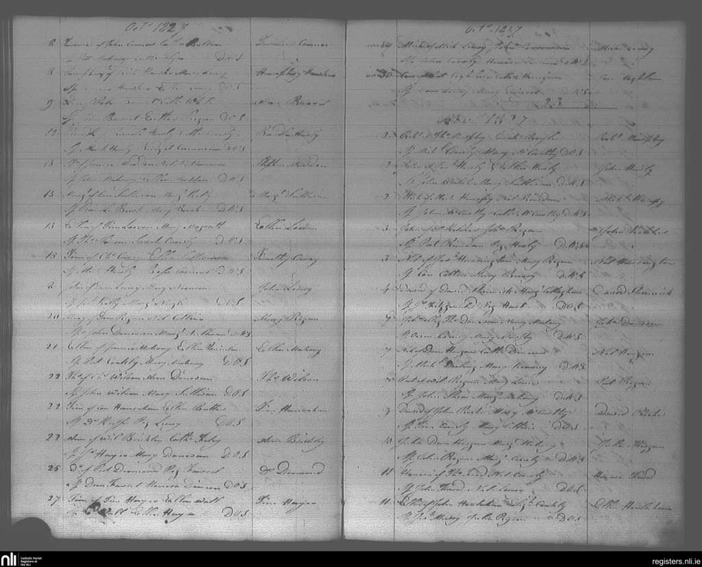 Bandon; County of Cork; Diocese of Cork and Ross. Baptisms, Oct. 1827 to Nov. 1827