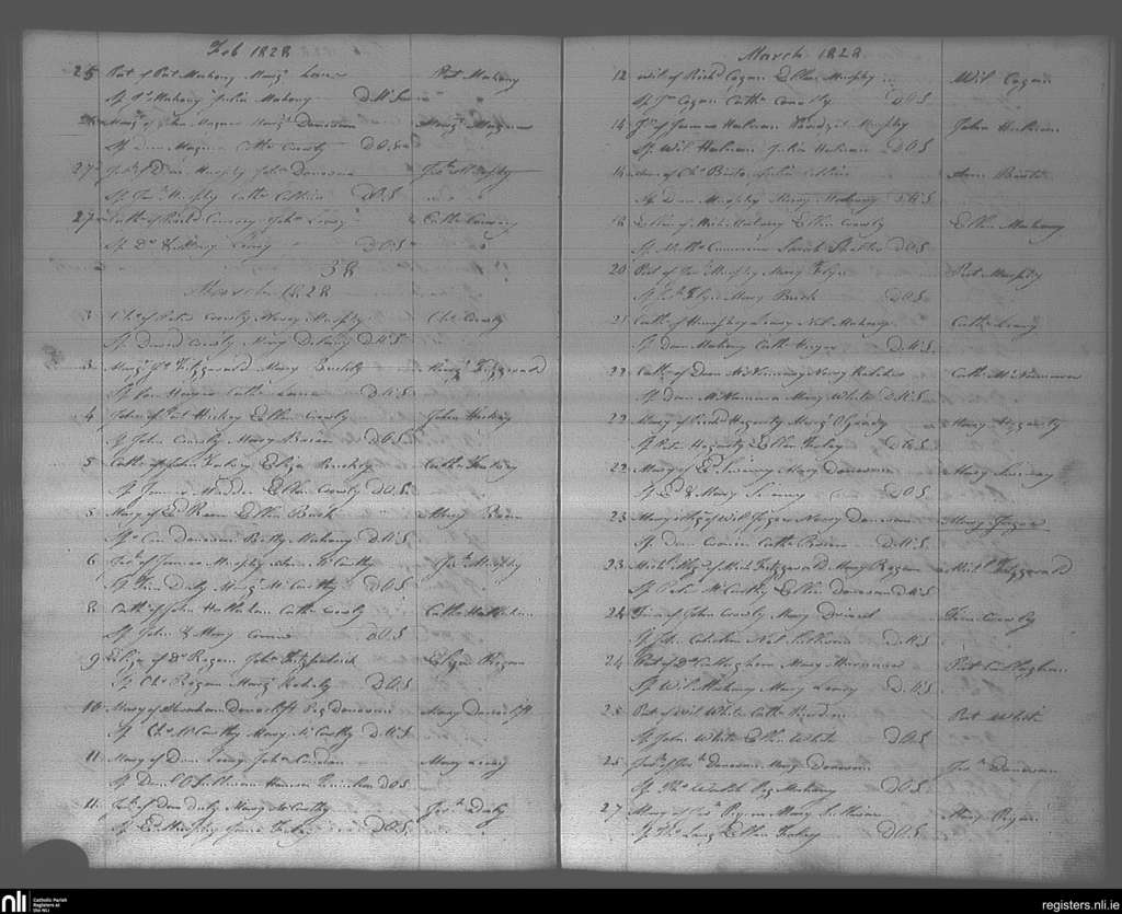 Bandon; County of Cork; Diocese of Cork and Ross. Baptisms, Feb. 1828 to Mar. 1828