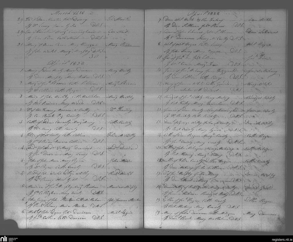 Bandon; County of Cork; Diocese of Cork and Ross. Baptisms, Mar. 1828 to Apr. 1828