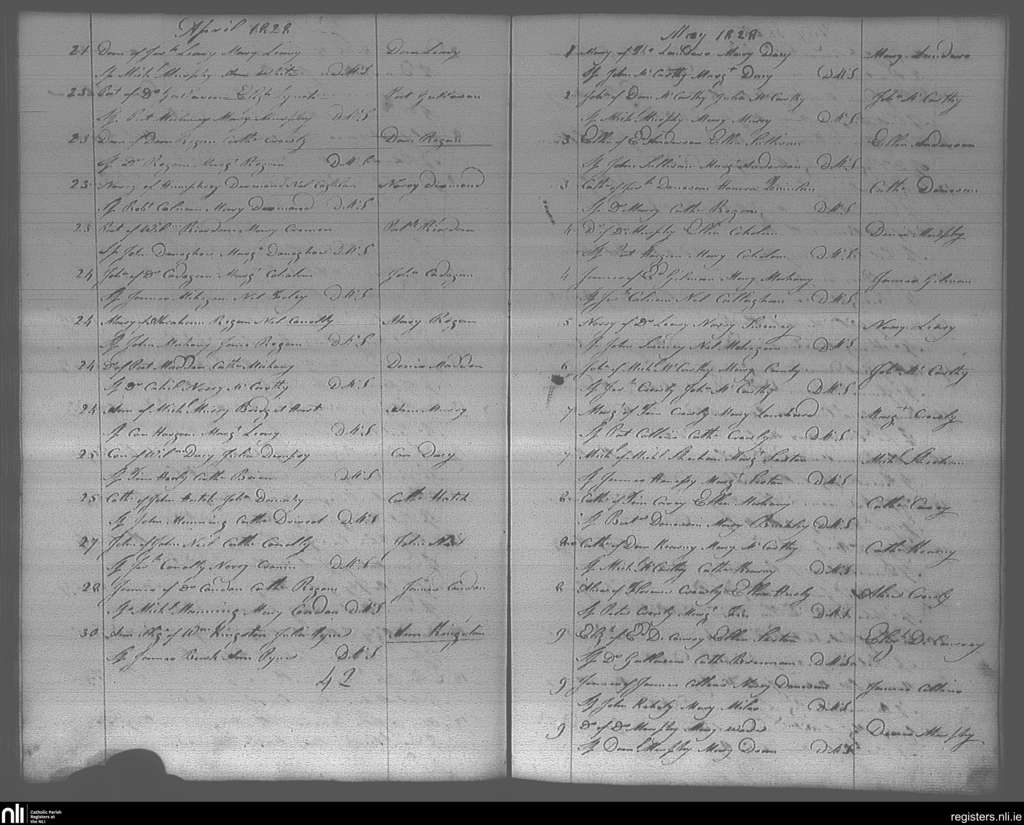Bandon; County of Cork; Diocese of Cork and Ross. Baptisms, Apr. 1828 to May 1828