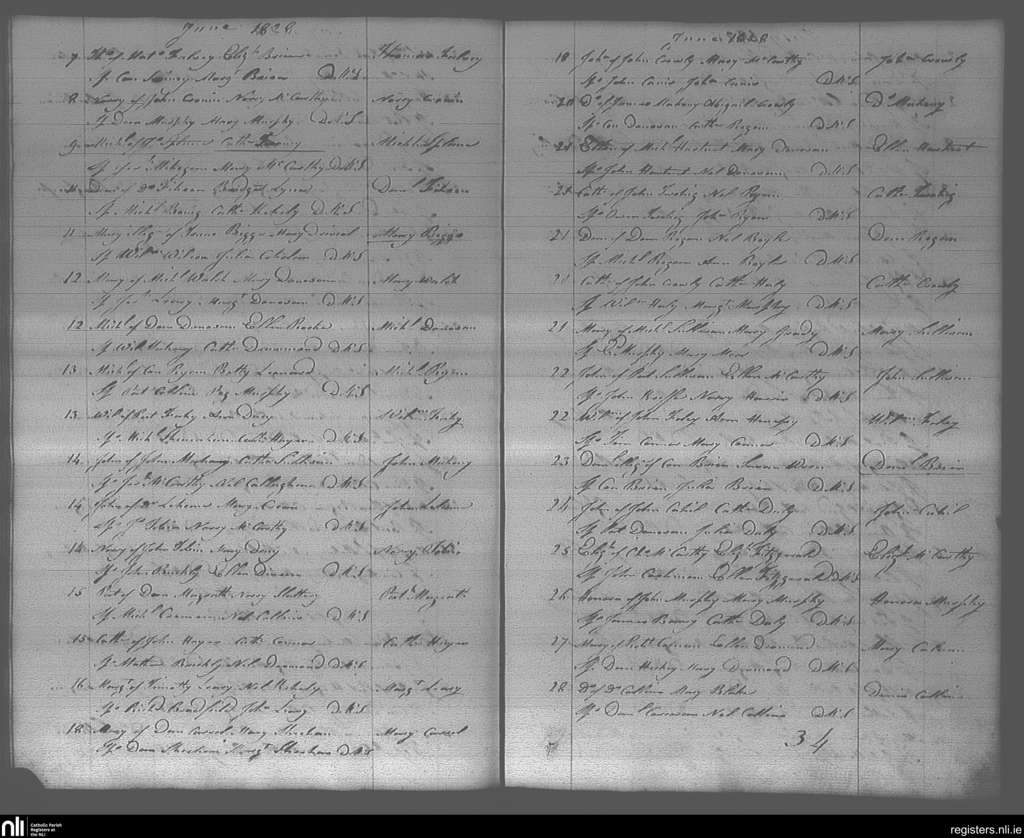 Bandon; County of Cork; Diocese of Cork and Ross. Baptisms, June 1828