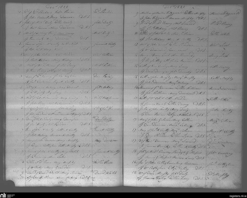 Bandon; County of Cork; Diocese of Cork and Ross. Baptisms, Dec. 1828