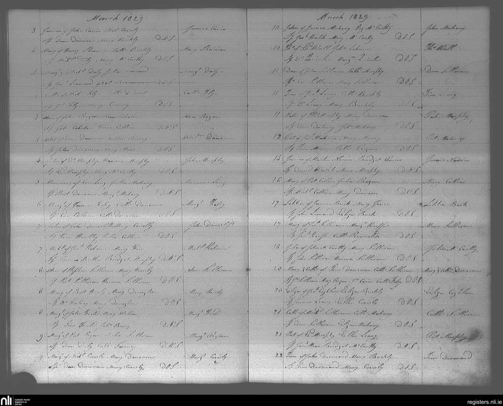 Bandon; County of Cork; Diocese of Cork and Ross. Baptisms, Mar. 1829