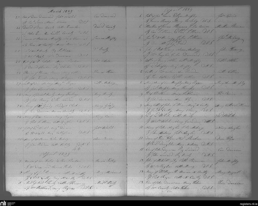 Bandon; County of Cork; Diocese of Cork and Ross. Baptisms, Mar. 1829 to Apr. 1829
