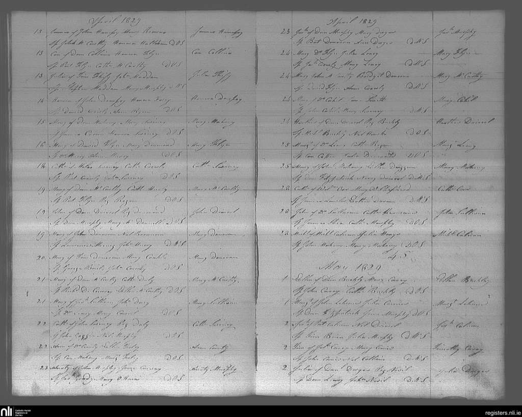 Bandon; County of Cork; Diocese of Cork and Ross. Baptisms, Apr. 1829 to May 1829